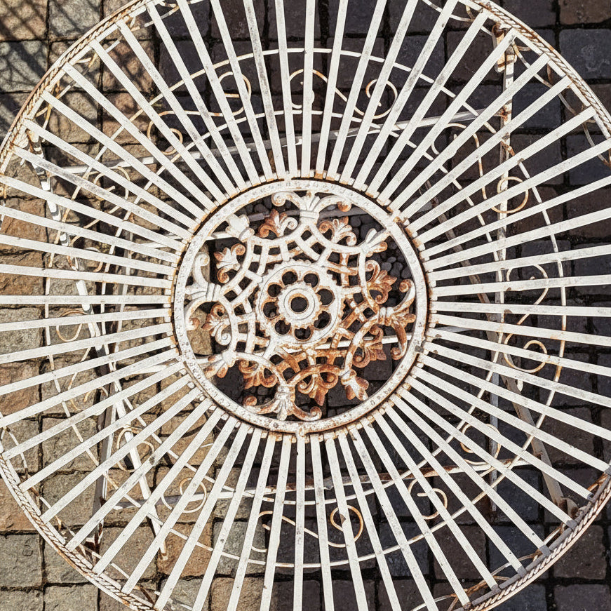 Franske caféborde i smedejern har gennem årtier været en fast del af både bybilledet og private haver i Sydeuropa. Designet er kendetegnet ved sin lethed, funktionalitet og dekorative detaljer, hvor det håndværkmæssige udtryk spiller en central rolle. Denne type møbel forbindes ofte med uformelle mødesteder, cafékultur og afslappede øjeblikke udendørs, hvor æstetik og funktion går hånd i hånd. Den sammenklappelige konstruktion gør bordet særligt anvendeligt i mindre rum og understreger dets praktiske oprindelse.
